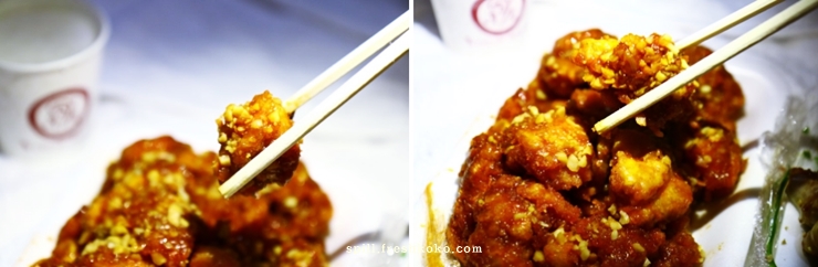 꼬마족발 탱글탱글하니 식감이 좋아서 계속 뜯어먹고 싶은 심정이다. 다음 닭강정을 먹어보겠다. 역시 닭강정은 배신을 하지 않는다. 닭느님은 진리이고 신앙이다. 땅콩가루가 듬뿍 얹혀져 있어 더욱 고소한 닭강정 맛을 느낄수 있다. 그리고 양념이 대체로 매워 매운걸 먹지 못하는 분들은 조금 힘들수 있겠지만 나는 맛있었다.