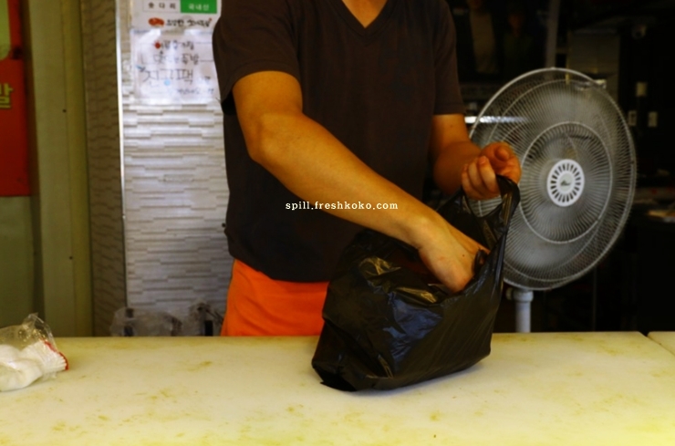 그래도 현재 살을 빼고 있으니깐 나름 양심은 있어서 작은걸 포장했다. 사장님이 야무지게 포장해주신다.