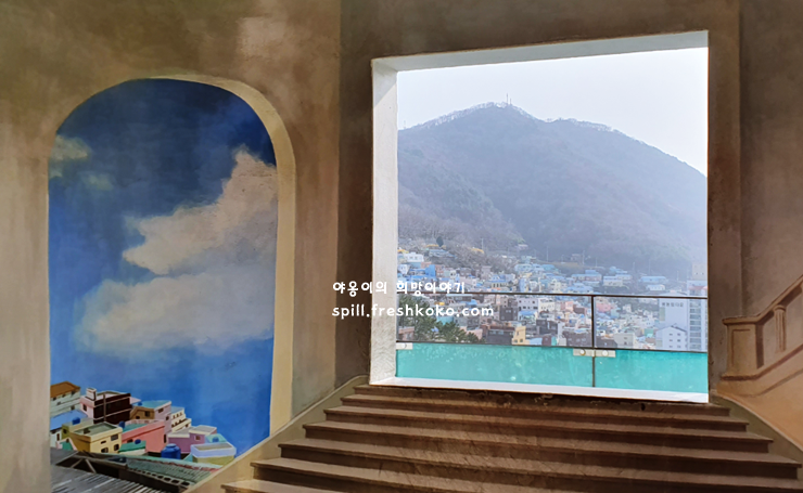 곳곳에 포토존이 있는 감천문화마을 최고의 포토스팟은 바로 이곳 입니다. 줄서서 찍어야 하는 명당 이 사진 한 방에 이곳이 부산 여행 코스 추천 이라고 생각됩니다.