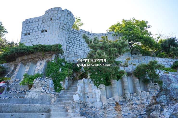 개인이 벽돌 하나 하나 얹혀가면서 만든것이 바로 매미성입니다. 나무와 절벽 그리고 남해바다 바로 앞에 아름다운 조화를 이루고 있는 매미성은 거제도에서 가장 핫한 여행지가 되었습니다. 그 이유는 풍경과 매미성의 조화가 최고로 아름다웠기때문입니다.