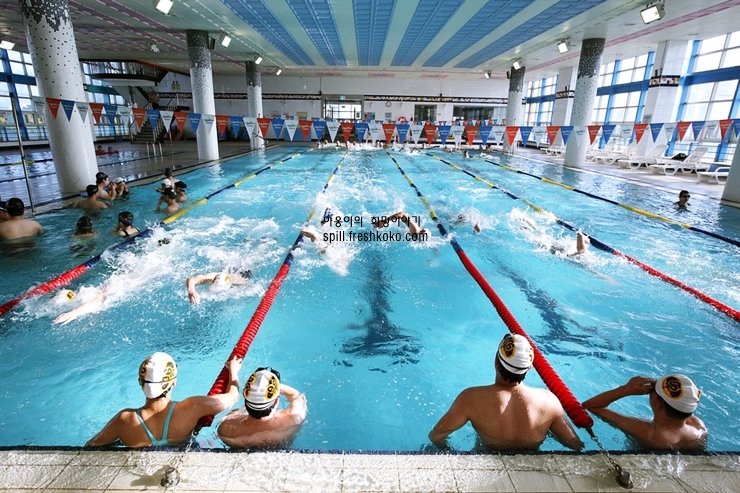 고온에서는 운동을 피하고, 운동 시 충분한 수분을 섭취합니다. 수영도 참 좋은 예방법이라고 볼 수 있겠습니다. 실내수영입니다.