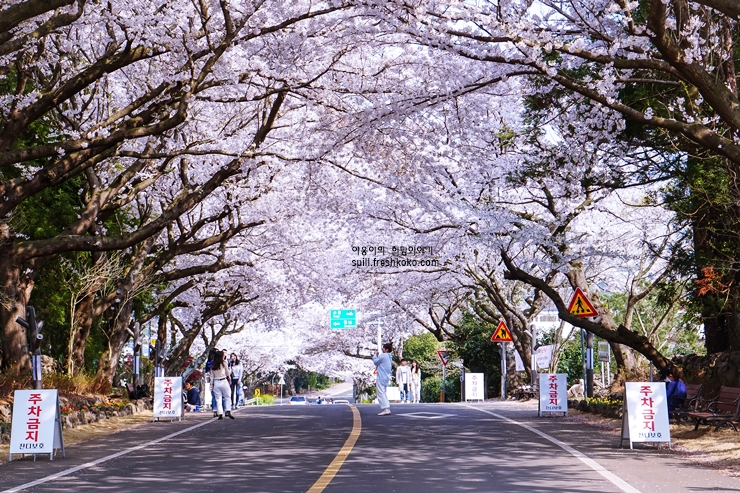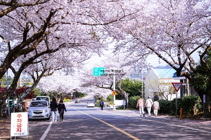 제주도 애월읍 장전리의 왕벚꽃거리는 제주도에서 봄철에 가장 아름다운 벚꽃 명소 중 하나로 알려져 있습니다. 크나큰 왕벚나무가 줄지어 심어져 있어, 봄이 되면 하얗고 분홍빛으로 물든 벚꽃들이 만개하여 장관을 이루는 제주 애월 가볼만한곳 입니다.