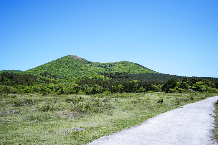 등산로는 비교적 완만하며, 길이 잘 정비되어 있어 초보자도 쉽게 오를 수 있습니다. 오름 정상까지의 거리는 약 2km 정도로, 천천히 걸으면 약 1시간 정도 소요됩니다.